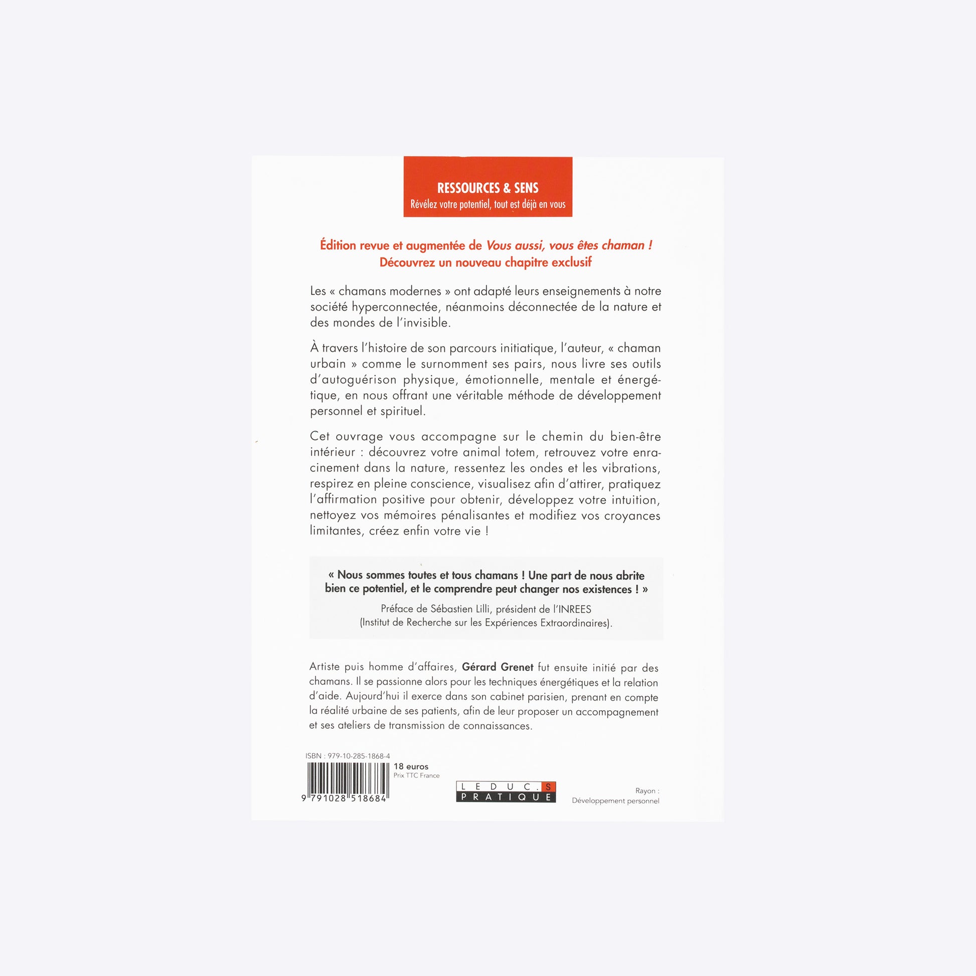 À travers l’histoire de son parcours initiatique, l’auteur, « chaman urbain » comme le surnomment ses pairs, nous livre ses outils d’autoguérison physique, émotionnelle, mentale et énergétique, en nous offrant une véritable méthode de développement personnel et spirituel.