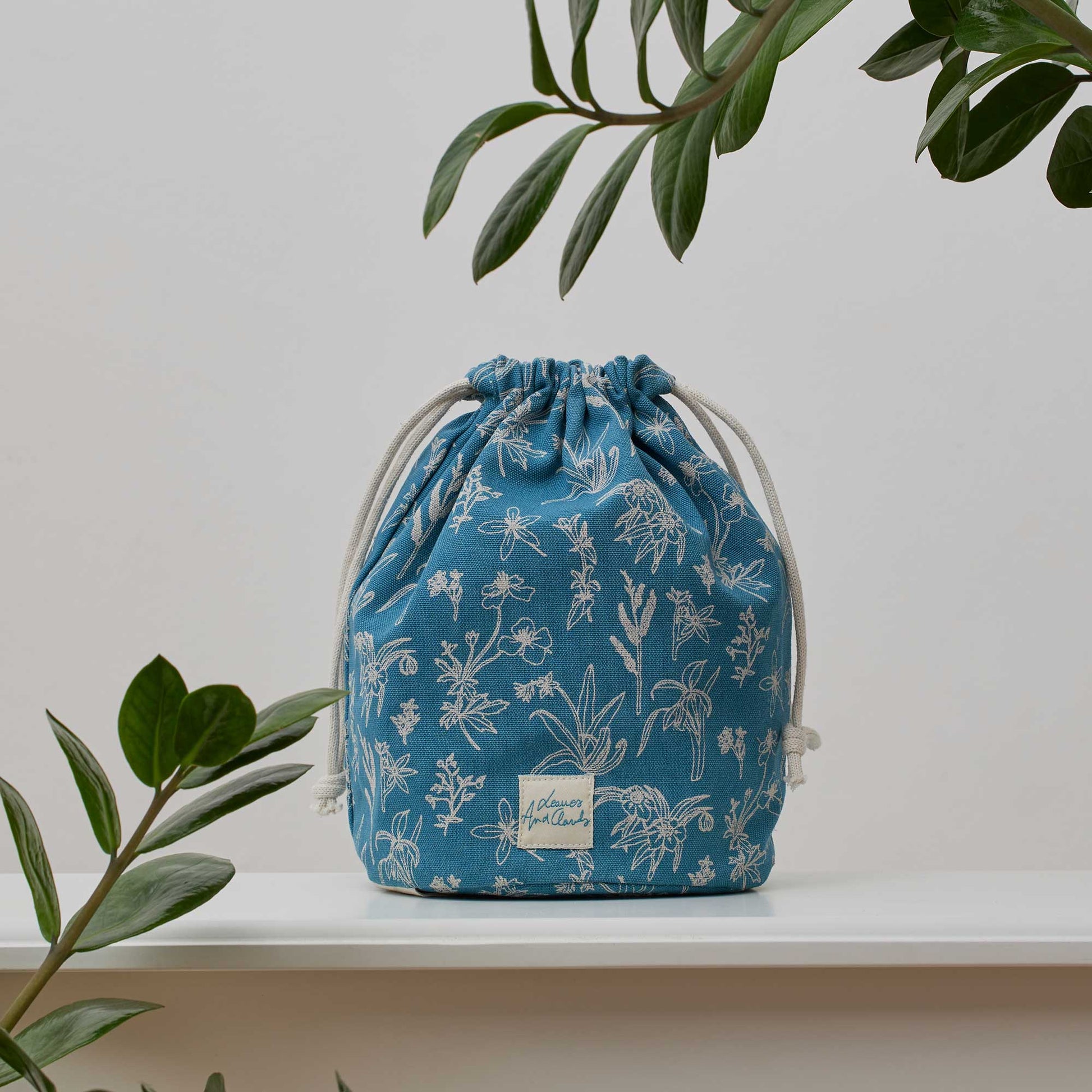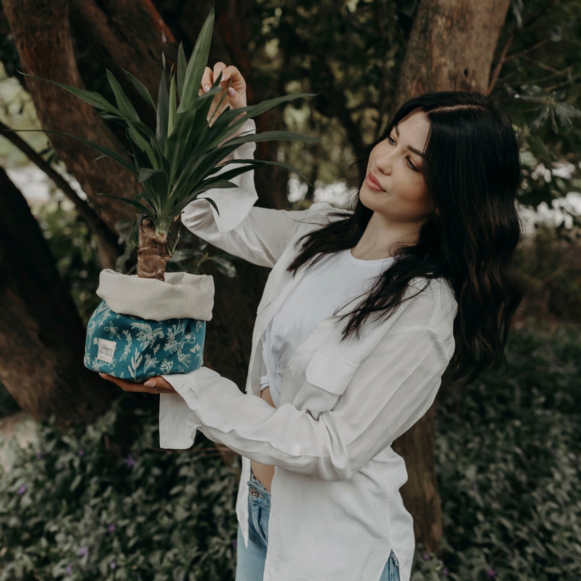 Notre pochon, qui peut servir de sac de transport mais aussi de cache-pot, mesure 25 x 16 cm et est fabriqué à 100% de toile de coton biologique certifié GOTS. Le tissu intérieur est déperlant. Il peut donc retenir l’humidité mais ne résiste pas à l’eau. Nous vous conseillons de mettre des billes d’argile dans le fond de votre pochon si vous souhaitez l’utiliser en tant que cache-pot.